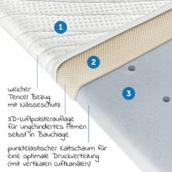 - Material: Bezug Vorderseite 100% Baumwolle, Matratzenkern aus 100% PU-Kaltschaum
