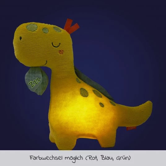 Manchmal fรคllt es den Kleinsten sehr schwer im Dunkeln zu entspannen und in einen ruhigen Schlaf zu finden. Das Fehn Nachtlicht Happy Dino begleitet Deinen Nachwuchs mit einem sanften Licht und nimmt die Angst vor der Dunkelheit. Das Licht kann in einzelnen Farben (Rot, Blau, Grรผn) oder im Farbwechsel-Modus leuchten. Auรerdem ist der niedliche Dino mit nachtleuchtender Bestickung ausgestattet. Das gibt Deinem Baby zusรคtzliche Sicherheit und vermittelt ein Gefรผhl der Geborgenheit.