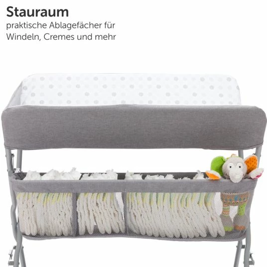 - Alles schnell zur Hand: In den seitlichen Ablagefächern finden Windeln, Feuchttücher und mehr Platz.