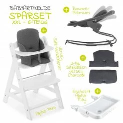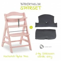 Budget 🌟 Hauck Hochstuhl Alpha Plus Rose – im Sparset inkl. Sitzkissen Jersey Charcoal – Rosa 🥰