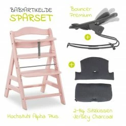 Deals 🥰 Hauck Hochstuhl Alpha Natur – im Sparset inkl. Holz-Essbrett und Sitzkissen Nordic Grey ❤️