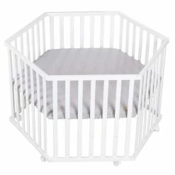 Deals 🤩 Roba Laufgitter 6-eckig Taupe -3-fach höhenverstellbar & Einlage – Sternenzauber – Weiß ✨