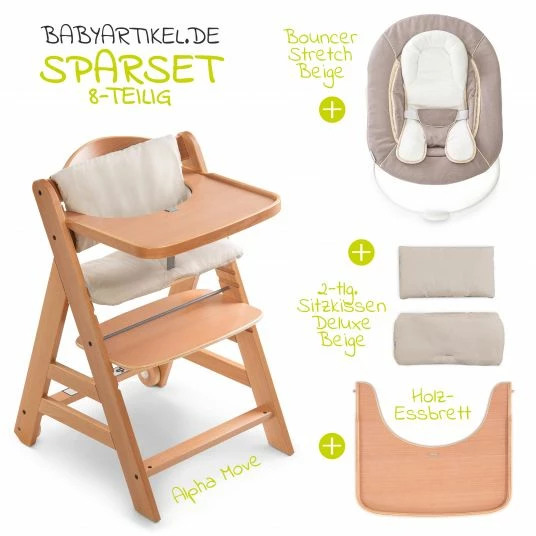 - Inkl. Alpha Move Hochstuhl, Newborn Aufsatz Stretch, Sitzverkleinerer, Essbrett, Sitzpolster, 5-Punkt Gurt
