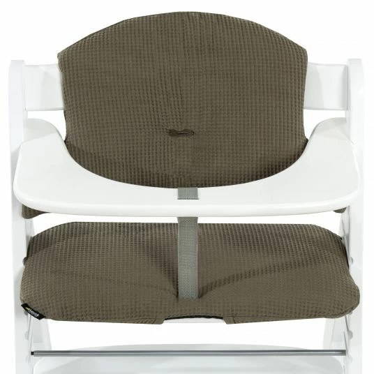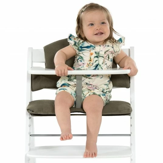 Der Sitzkomfort kommt dabei auch nicht zu knapp: Kuscheliger, angenehmer Baumwoll-Waffelpiqué mit atmungsaktiven und feuchtigkeitsregulierenden Eigenschaften bieten ein angenehmes Sitzgefühl. Die weiche Polsterung der Hochstuhlauflage macht den Hochstuhl besonders bequem.