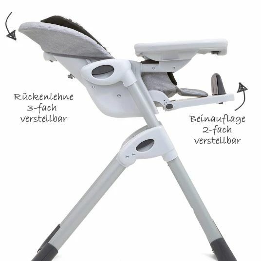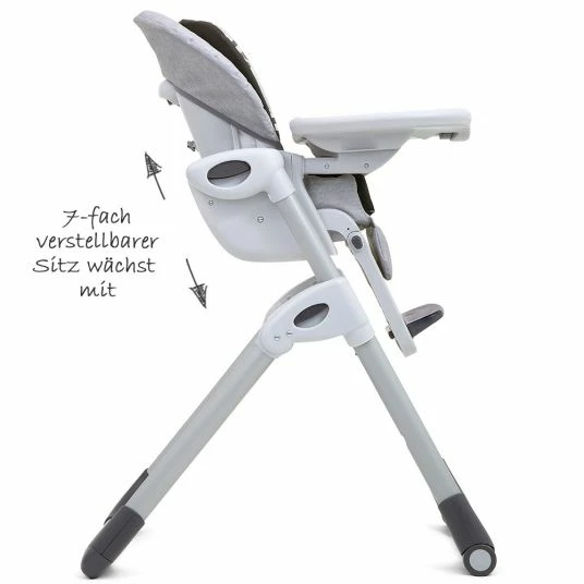 Der mitwachsende Hochstuhl Mimzy 2in1 – Logan von Joie macht eine prima Figur am Familientisch. Sobald Dein Kind selbstständig sitzen kann, ist der gepolsterte Hochstuhl ideal für die gemeinsamen Mahlzeiten. Im mitgelieferten Sitzverkleinerer haben es schon die ganz Kleinen super bequem. Die Rückenlehne ist dreifach im Neigungswinkel verstellbar und der Sitz siebenfach in der Höhe. Die Fußstütze kann in drei unterschiedlichen Stufen eingestellt werden. Und auch der 5-Punkt-Gurt des Hochstuhls ist zweifach höhenverstellbar. Er hält Dein Kleines sicher im Sitz, während es die ersten Essversuche unternimmt oder von Dir gefüttert wird.