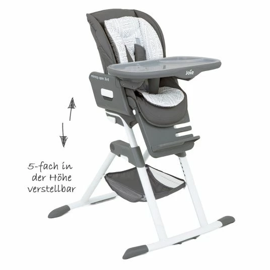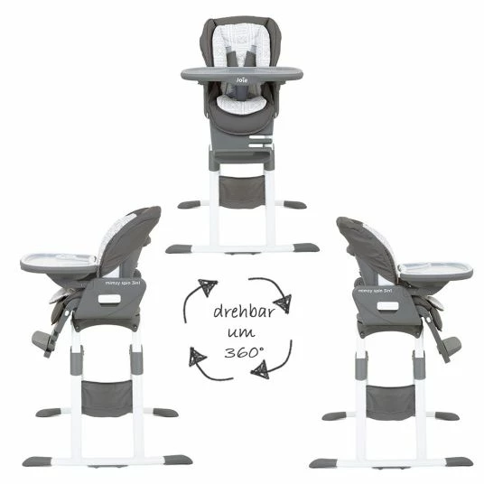 Der Hochstuhl Mimzy Spin 3in1- Tile von Joie macht eine gute Figur am Familientisch und bietet Dir und Deinem Nachwuchs dabei maximale Flexibilität. Die Rückenlehne ist fünffach bis in eine bequeme Liegeposition verstellbar, sodass der Hochstuhl auch schon für kleine Esser geeignet ist. Ein weicher Sitzverkleinerer sorgt dabei für extra Komfort.