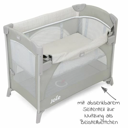 Das Reisebett Kubbie Sleep – Wheat von Joie macht nicht nur Babys SchlafstΓ€tte im Urlaub eine gute Figur. Du kannst es auch als praktisches Beistellbettchen oder als Laufstall nutzen.Β MΓΆglich machen es ein abnehmbarer Einhang und ein absenkbares Seitenteil.Β Auch praktisch: Kubbie Sleep lΓ€sst sich ruckzuck zusammenklappen und auf diese Weise kompakt und einfach transportieren.