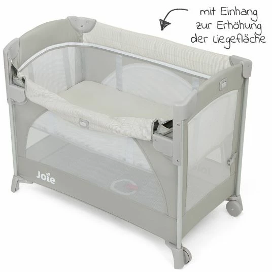 Mit dem mitgelieferten Bassinet-Einhang kannst Du die LiegeflΓ€che erhΓΆhen. So liegen die Kleinsten nicht direkt ΓΌber dem Boden und Du kannst Deinen Schatz besser sehen und ihn nachts leicht zum Stillen aus dem Bettchen heben. Superpraktisch: Weil sich eines der Seitenteile 2-fach absenken lΓ€sst, kannst Du das Reisebett auch als Beistellbettchen neben dem eigenen Bett einsetzen.