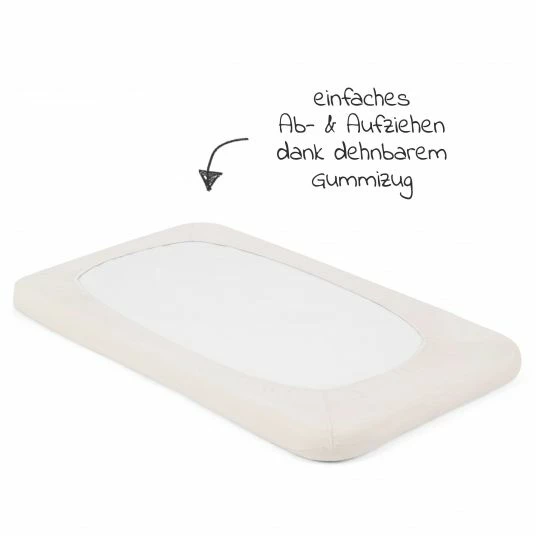 Das cremefarbene Spannbetttuch spannst Du ganz einfach über die Roomie Matratze, so dass die gesamte Liegefläche abgedeckt ist. Der praktische Rundum-Gummizug schmiegt sich um die Matratze und sorgt so für einen faltenfreien Sitz. Das Auf- und Abziehen klappt dadurch kinderleicht und ist in Sekundenschnelle erledigt. Nach einer Reinigung in der Waschmaschine bei schonenden 30°C ist es wieder strahlend sauber und bereit für die nächsten Nächte.