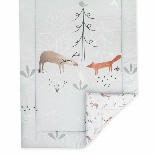 Auf der Krabbeldecke – Woodlife von Julius Zöllner kann Dein kleiner Weltentdecker nach Herzenslust krabbeln, spielen oder einfach nur entspannen. Die Polsterung schützt zuverlässig, wenn der Krabbelversuch doch noch nicht ganz gelingt. Mit einem Maß von 95 x 135 cm bietet die Krabbeldecke Deinem Baby viel Platz. Der weiche Stoff aus hautfreundlicher Baumwolle und das hübsche Design machen die Krabbeldecke zu einer kleinen Wohlfühloase.