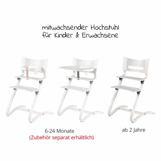 Die Kleinsten werden so schnell größer. Was gibt es da Praktischeres als langlebige und mitwachsende Möbel! Mit dem Leander Hochstuhl Classic™ stabil, individuell einstellbar, mitwachsend in Weiß erhältst Du ein wandelbares Multitalent. Dein Kind kann den Design Klassiker ab ca. 6 Monate bis zum Erwachsenenalter nutzen.
