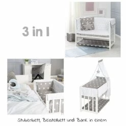 Das weich gepolsterte Nestchen sorgt fΓΌr ein wohliges GefΓΌhl von Geborgenheit und sieht dazu auch noch hΓΌbsch aus. Das Nestchen polster die GitterstΓ€be im Kopfbereich des Babybettchens ab und sorgt dafΓΌr, dass die kleinen GliedmaΓen Deines Baby im Inneren des Bettchens bleiben. Passend fΓΌr Babybetten 60 x 120 cm und 70 x 140 cm. Es wird einfach mit StoffbΓ€ndern an den Gittern befestigt.