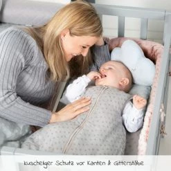 Die Bettumrandung aus extraweichem Jersey aus Bio-Baumwolle ist hautfreundlich, atmungsaktiv, schadstofffrei und wasseraufnehmend und sorgt so fΓΌr ein kuscheliges und trockenes GefΓΌhl im Babybett. Durch die atmungsaktiven Eigenschaften der verwendeten Materialen,Β wird eine Γberhitzung vermieden.