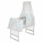 Den hübschen Himmel musst Du nur an einer Himmelstange befestigen, schon verwandelt er das Bettchen Deines Babys in eine gemütliche Schlafstätte. Das Nestchen polstert weich die Gitterstäbe im Kopfbereich ab, damit sich Dein Liebling nicht daran stoßen kann. Der Kissenbezug ist für 40 x 60 cm große Kopfkissen geeignet, der Deckenbezug für Bettdecken mit den Maßen 100 x 135 cm.